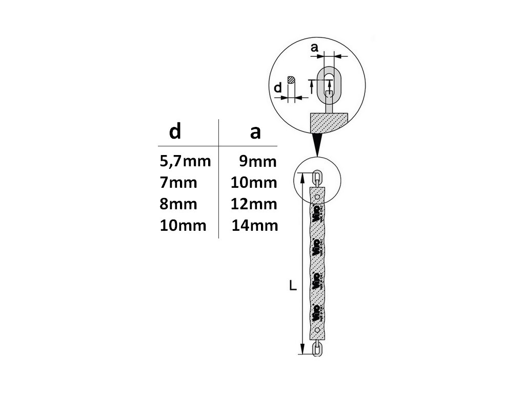 Kalený řetěz 8x1200mm