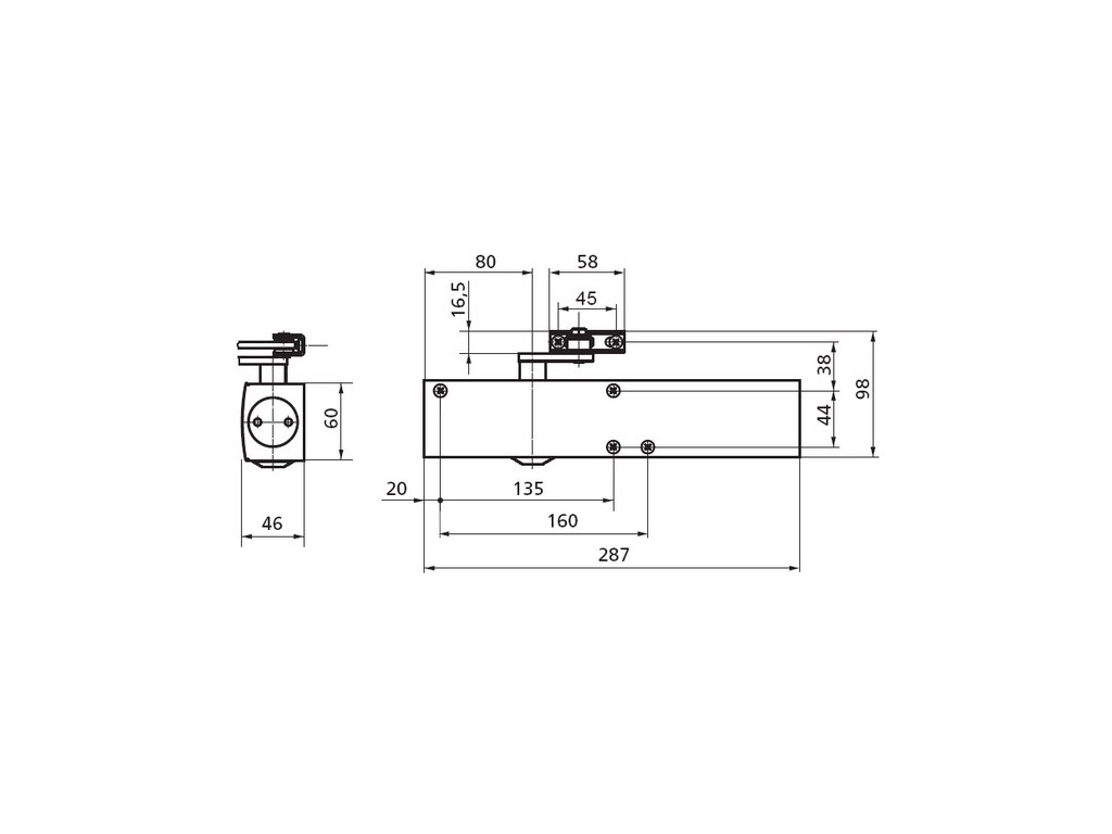 - rozměry těla zavírače 287x60x46 mm (DxVxH)